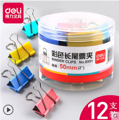 得力(deli)50mm彩色长尾夹8551(筒) |