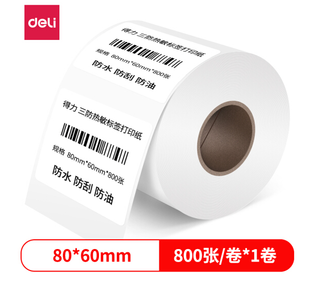 得力(deli)80*60mm三防热敏标签打印纸 800张*1卷12006 |