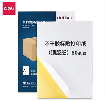 得力(deli) A4不干胶标贴打印纸 带背胶可粘贴标签纸 光面铜版纸 80张 11878 |