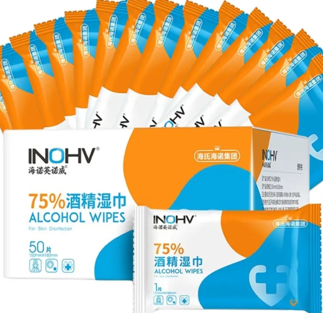 海氏海诺英诺威 75%酒精湿巾消毒棉片 50单片独立包装便携大号一次性酒精棉片卫生清洁消毒湿巾 15*18cm |