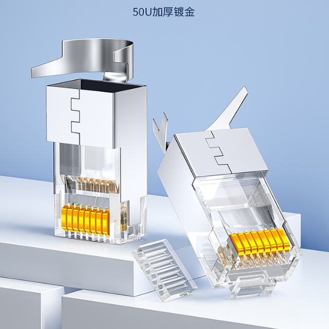 山泽超六类水晶头【超六类【万兆】50个/盒】工程级网络连接器 RJ45带屏蔽电脑8p8c网线接头 Cat6a两件式接头 50个装 WJ6A050U |