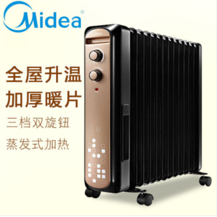 美的(Midea)油汀取暖器家用节能电暖气13片电油丁大功率电暖器NY2513-15C家电 金色 |