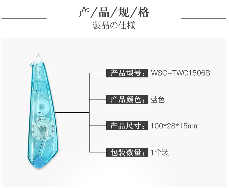 国誉淡彩曲奇替芯式修正带(蓝) 5mm*6m WSG-TWC1506B(颜色随机) 10个/组 |