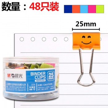 晨光(M&G)文具25mm彩色可爱笑脸长尾夹 金属票据夹 办公用品燕尾夹 48个装ABS92703 |