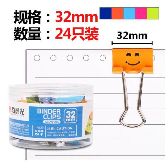 晨光(M&G)ABS92704彩色可爱笑脸32mm长尾夹 24个装 |