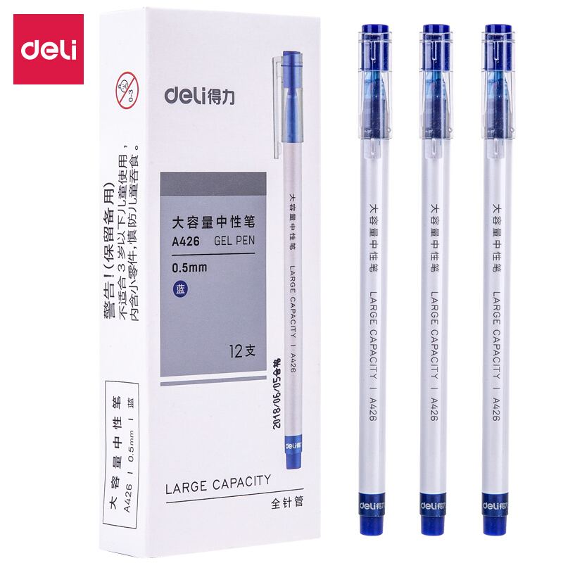 得力A426学生中性笔0.5mm全针管(蓝)12支/盒