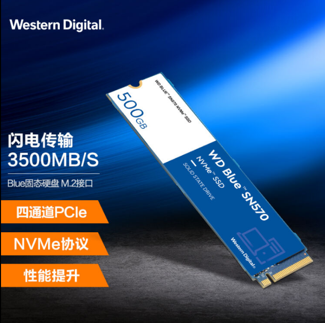 西部数据(Western Digital)500GB SSD固态硬盘 M.2接口(NVMe协议) WD Blue SN570 四通道PCIe 高速