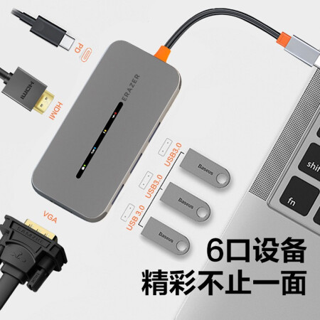 异能者 联想Type-C扩展坞USB分线器HDMI/VGA雷电4转接头笔记本转换器PD快充 DC06 USB-C六合一【HDMI+VGA+PD+USB】