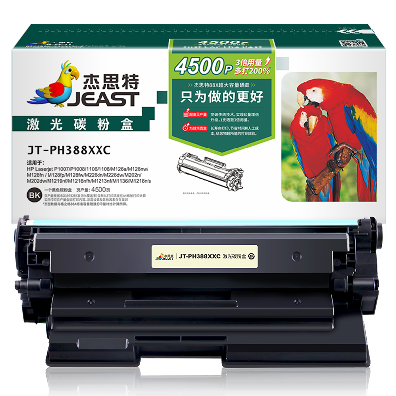 杰思特 JT-PH388XXC 兼容388A 约4500页 超大容量 一支顶三支 适用惠普P1007 P1008 1106 1108 1213MFP 1136MFP打印机 |