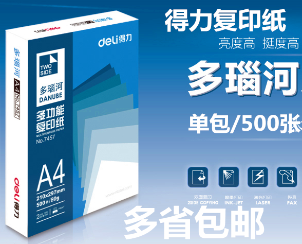 得力(deli) 7441 多瑙河复印纸 A4/70g/5包/箱 (单位:箱) |