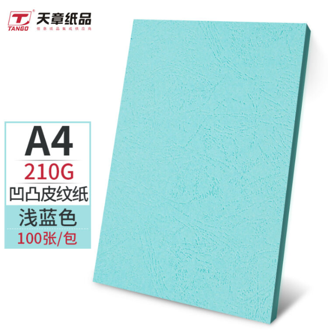 天章(TANGO)A4平面皮纹纸 (150克100张) 封面纸/压纹纸/云彩纸/封皮纸 彩色卡纸装订标书硬厚手工卡纸 浅蓝色 100张 |