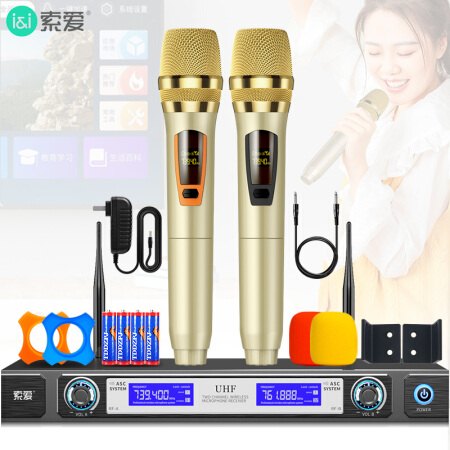 索爱(soaiy)SA-WK19固频大机金属款 无线话筒麦克风专业k歌一拖二家庭ktvU段手持带接收器培训会议演讲演唱主持舞台 |