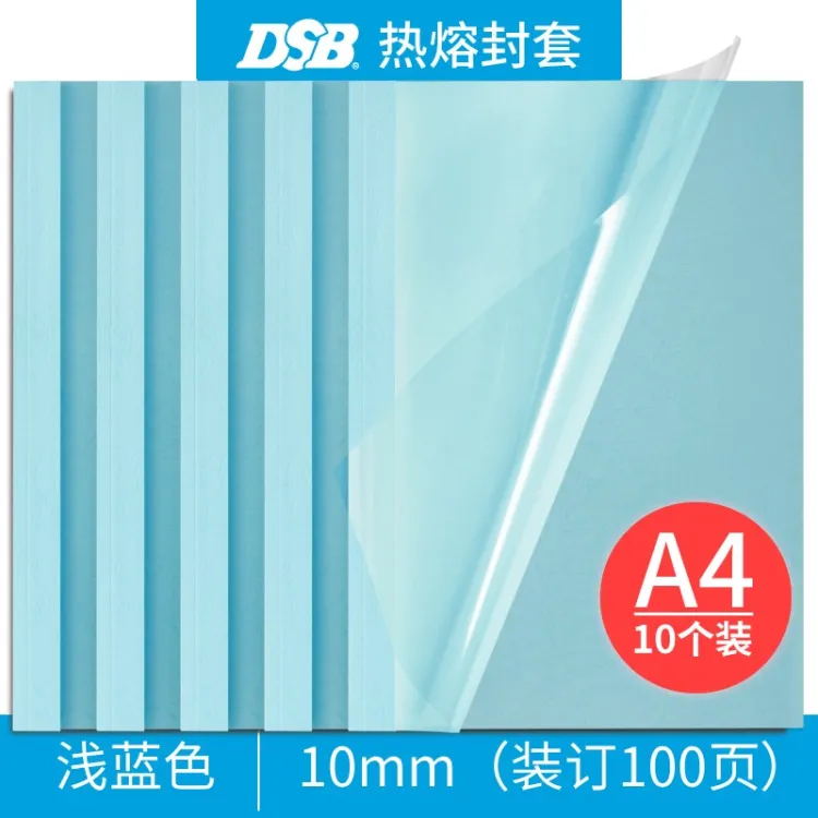 透明热熔封套A4(浅蓝 10mm 10个装 100页) 热熔装订机专用胶装封面装订封皮 |