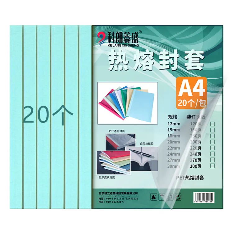 科朗鑫盛 KL-FT27 【12mm浅蓝(20个装)】热熔封套A4热熔装订机专用透明封皮胶套a4文件塑料封面 |