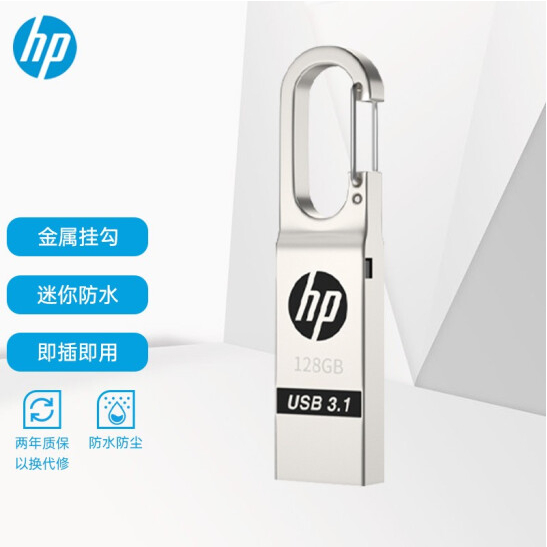 惠普(HP) x760w 银色 128GB USB3.1 U盘 高速安全金属钥匙扣 防水抗摔 电脑车载两用优盘 |