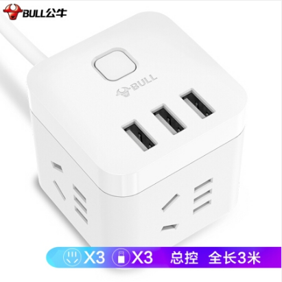 公牛(BULL) GN-U303U 魔方USB插座 插线板/插排/排插/接线板/拖线板 3USB接口+3插孔全长 3米 |