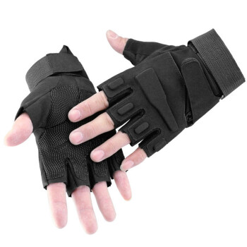 战术手套男士户外半指手套军迷健身训练运动登山骑行手套 黑色 中码 |