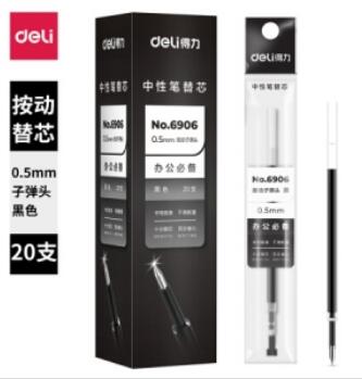得力6906中性笔芯0.5mm弹簧头(黑)(20支/盒)(盒) |
