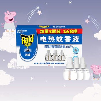 雷达(Raid) 电蚊香液 替换装 3瓶装 168晚 无香型 驱蚊液 灭蚊液 防蚊液 驱蚊水 驱蚊器 |