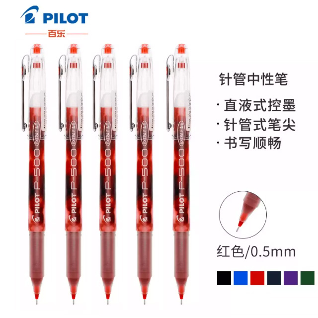 百乐(PILOT)BL-P50/P500/0.5mm(红色-5支装)中性笔顺滑针嘴水笔财务考试用