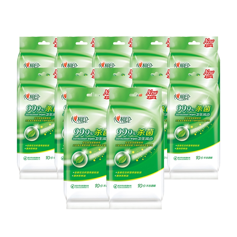 心相印湿巾 卫生99.9%杀菌湿巾 10片独立装*12包 (量贩装)120片便携湿巾 |