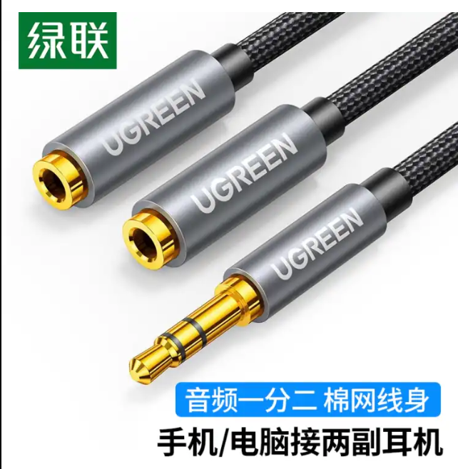 绿联(UGREEN) 3.5mm一分二音频线 1分2公对母情侣耳机线 AUX立体声分线器 手机音频转接头 棉网款 |