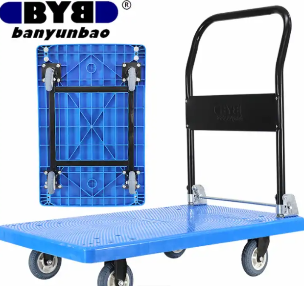 搬运宝(BYB)超强静音小推车平板车手推车折叠手拉车拖车拉货车塑料搬运车大号90X60cm 承重800斤 JQ-59L炫蓝 |