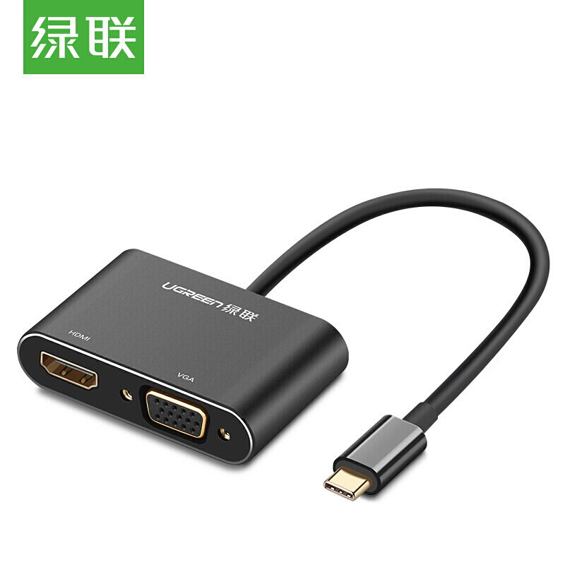 绿联Type-C转HDMI+VGA转换器二合一适用苹果macbook扩展小米Air华为电脑笔记本 PD供电款 50505
