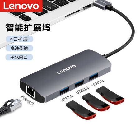 联想 Type-C转千兆网口USB-C转RJ45有线网卡转接头笔记本电脑USB3.0*3分线器 F1-U03 |
