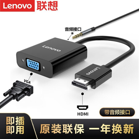 联想(Lenovo)HDMI转VGA转换器 高清视频转接头 带音频接口适配器 笔记本/投影机/显示器 H203-B(黑色)