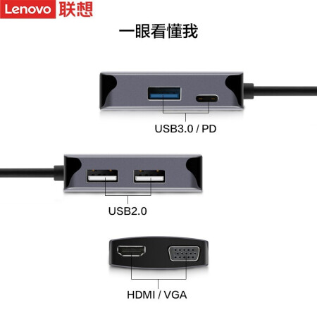 | 联想C06 Type-C转HDMI\/VGA转换器USB-C分线器4K投屏 F1-C06 |