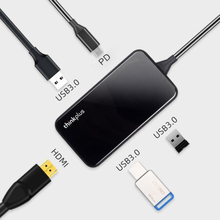 Thinkpad 转接线 分线器 移动USB hub 多功能扩展 手机电脑投屏器 转接器 TPH-05 USB-C一转五玻璃+合金材质