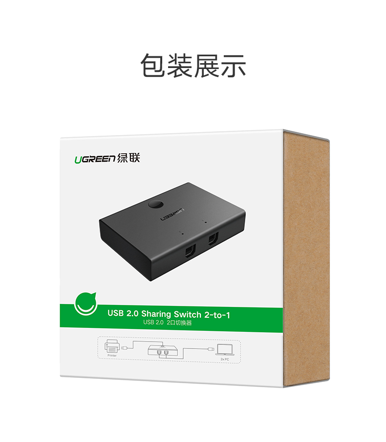 绿联 USB打印机共享器分线器一分二 二进一出切换器 |