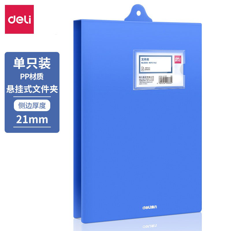 得力(deli)5333文件夹A4悬挂式文件夹装可挂墙办公竖式悬挂文件夹上翻横式蓝色单只 |