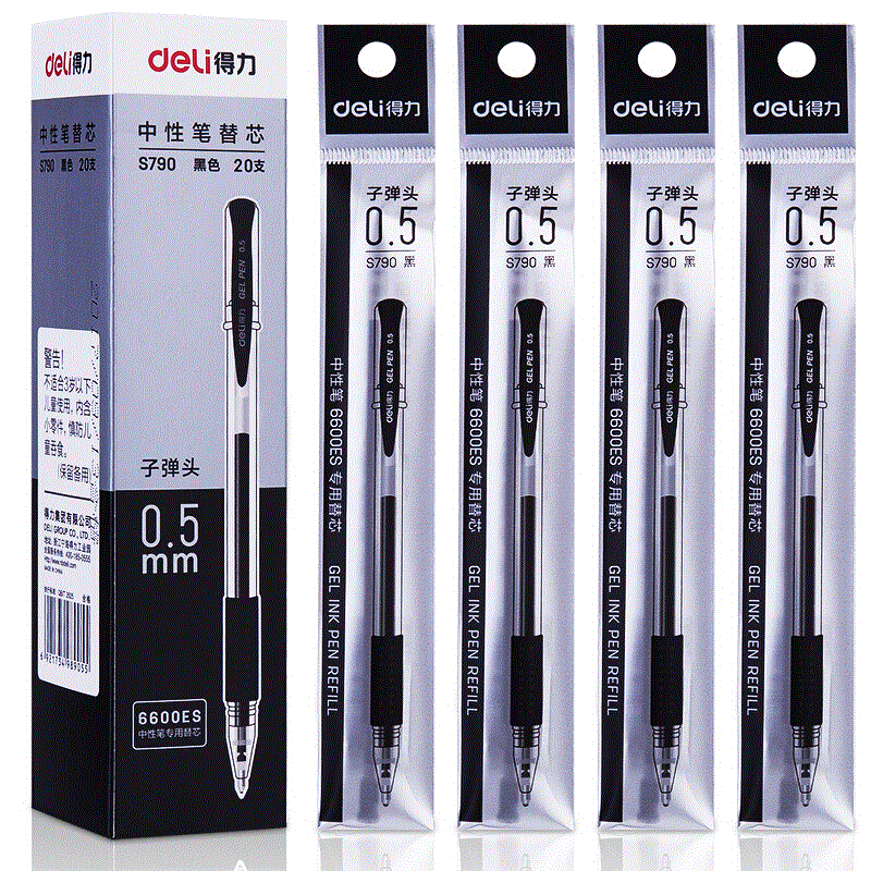 得力S790中性笔替芯0.5mm子弹头(黑) |