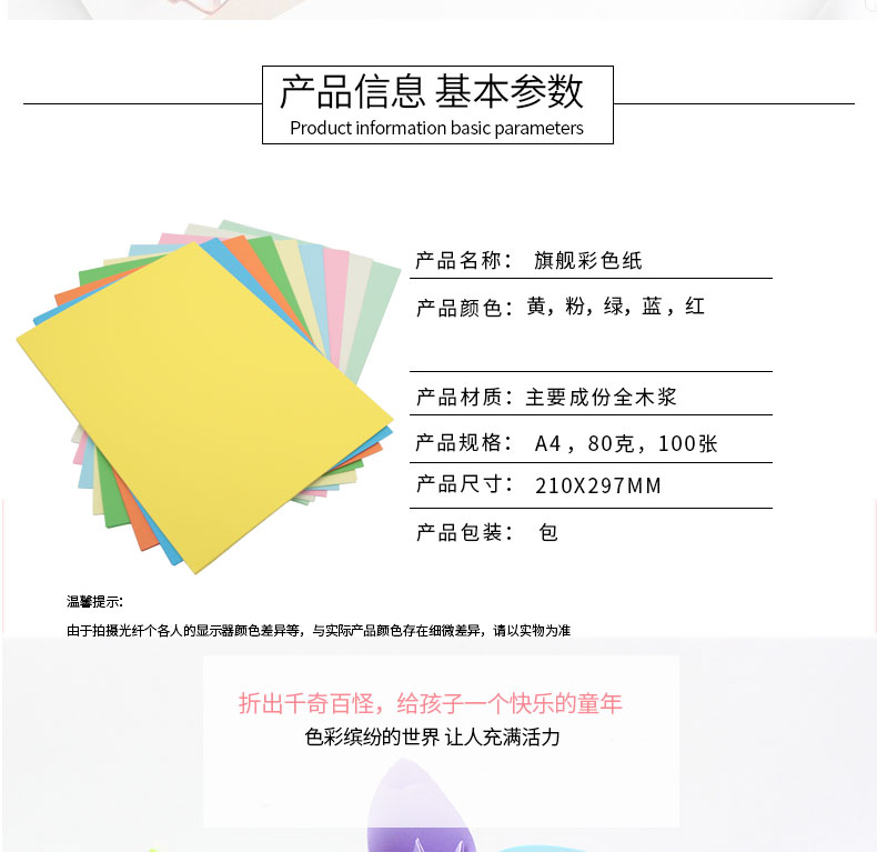 旗舰 彩色复印纸 A4 80G 25包/箱 100页/包 颜色备注 |