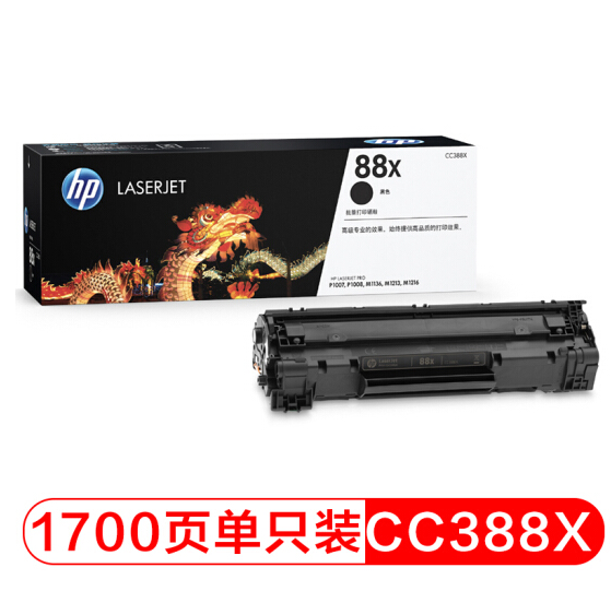 | 惠普(HP)CC388X 大容量黑色硒鼓 88A 单只装(适用HP M1136;P1108;P1106等)约1700页 |