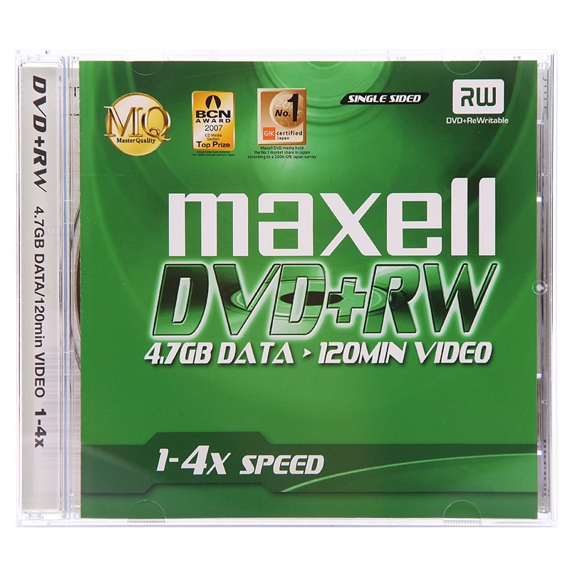 麦克赛尔(maxell)DVD+RW光盘 刻录光盘 光碟 可擦写空白光盘 4速4.7G台产 1片盒装 |