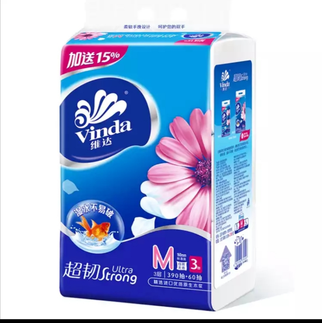 维达(Vinda) 抽纸纸巾 超韧3层150抽软抽*3包(认准真M码)(10提起售) |